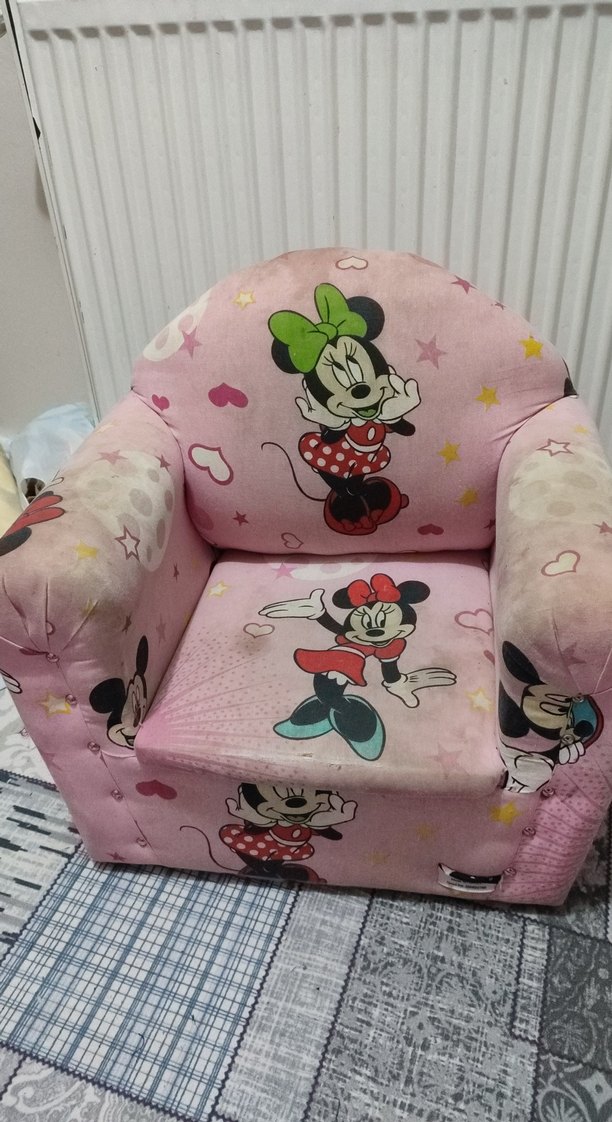 Pembe sentetik kumaştan yapılmış, renkli baskılı çocuk uyku koltuğu,yıpranmış olduğu için fiyatını uygun tuttum. Ümraniye.