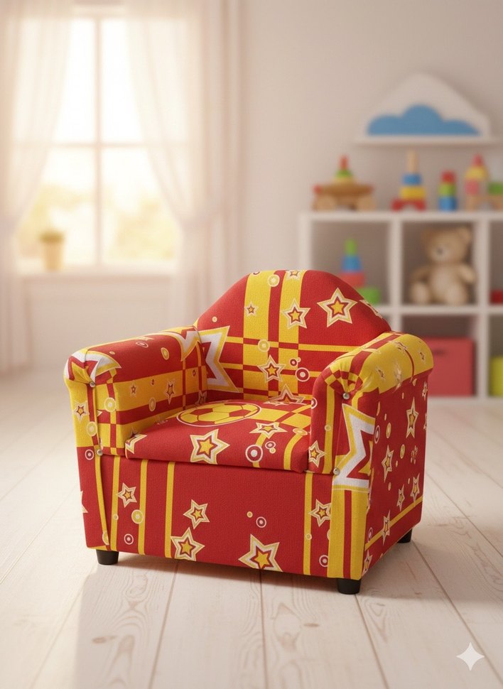0 9 yaş arası desenli çoçuk koltuğu .Yıldız ve çizgi desenli, çocuklar için rahat ve eğlenceli renkli kırmızı koltuk.