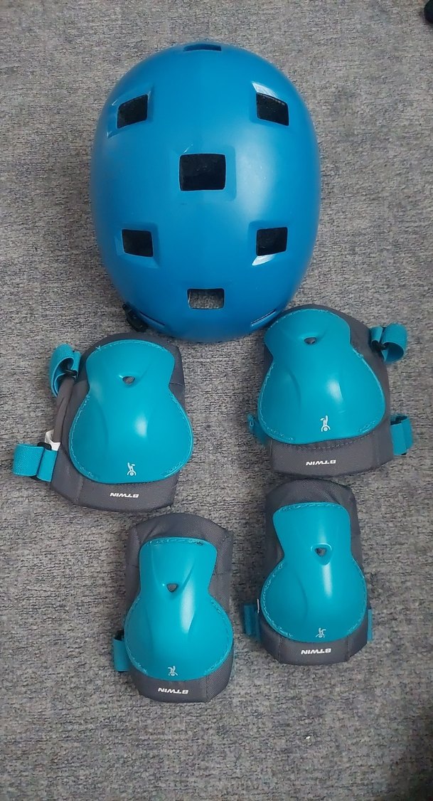 Mavi renkte, cırtcırtlı bantlara sahip çocuk kaskı ve diz dirsek pedleri, sağlam plastikten üretilmiştir. ️ xs beden olarak geçiyor. koruyucular neredeyse hiç kullanılmadı. Kaskı da daha çok evde oyun oynarken taktı diyebilirim. Dışarı da bir kaç kez kullandık sadece