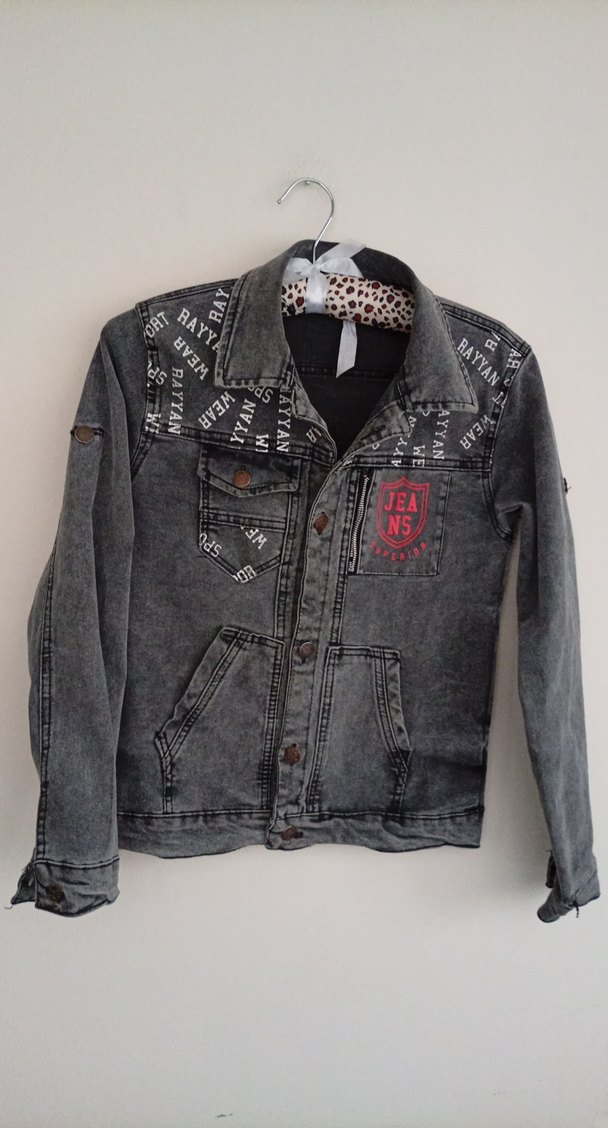 Gri renkli, düğmeli, nakış detaylı, notched lapel yaka ve uzun kollu çocuk denim ceketi. Normal boy ve regular fit ile günlük rahat stil için uygun. ✨
