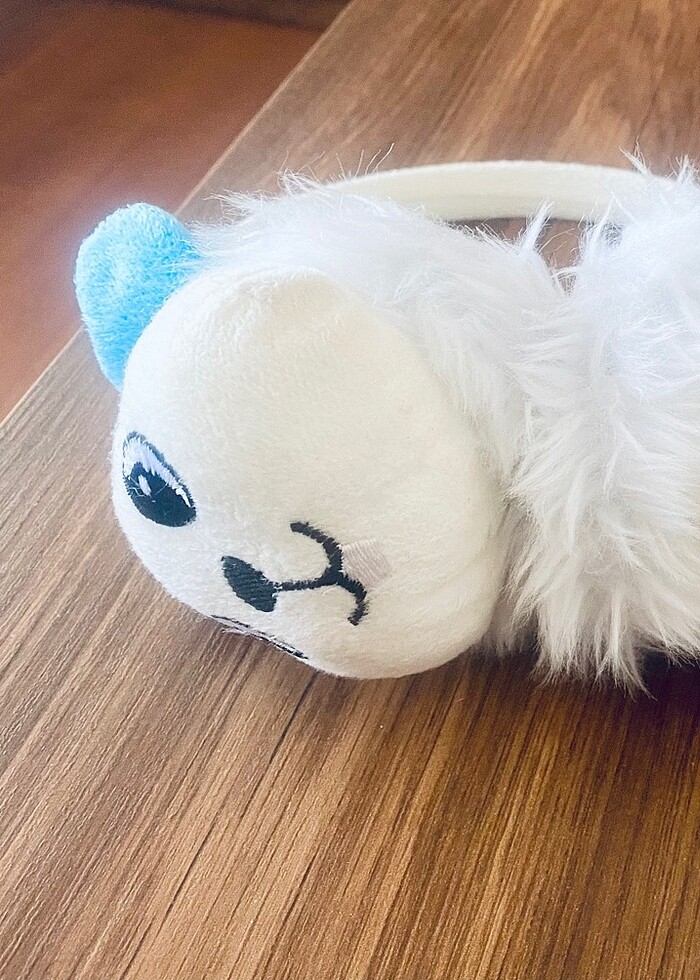 Peluş kulaklık Sadece bir noktasında kalem lekesi mevcut .