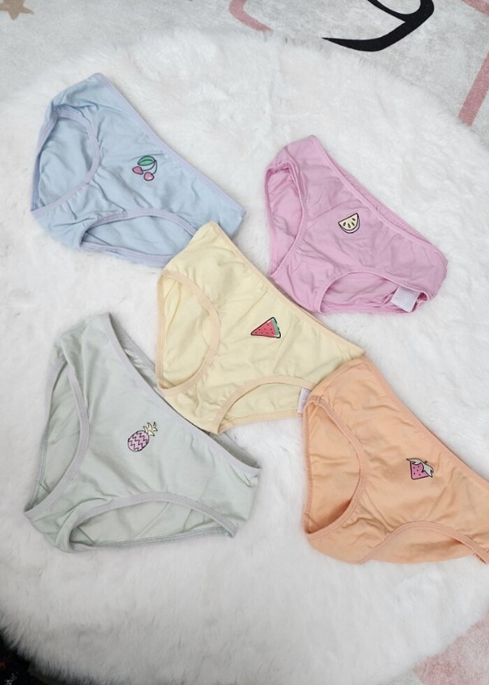 5'li. Hiç giyilmedi.Mağazadan aldıktan sonra direk makinede yikanildi .Kızıma küçük olduğunu farkettik ,yepyeni kullanılmamış durumdalar.Etiketi 7-8 yaş
