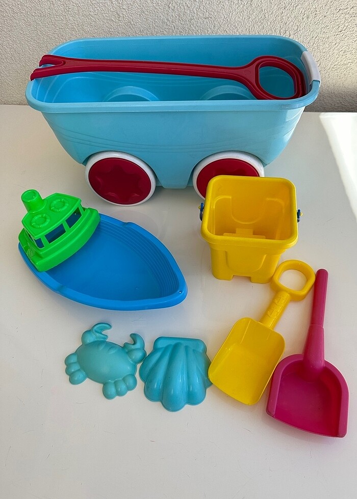 Çocuk kum oyuncağı her parçası sağlam???????? vagonlu kova seti