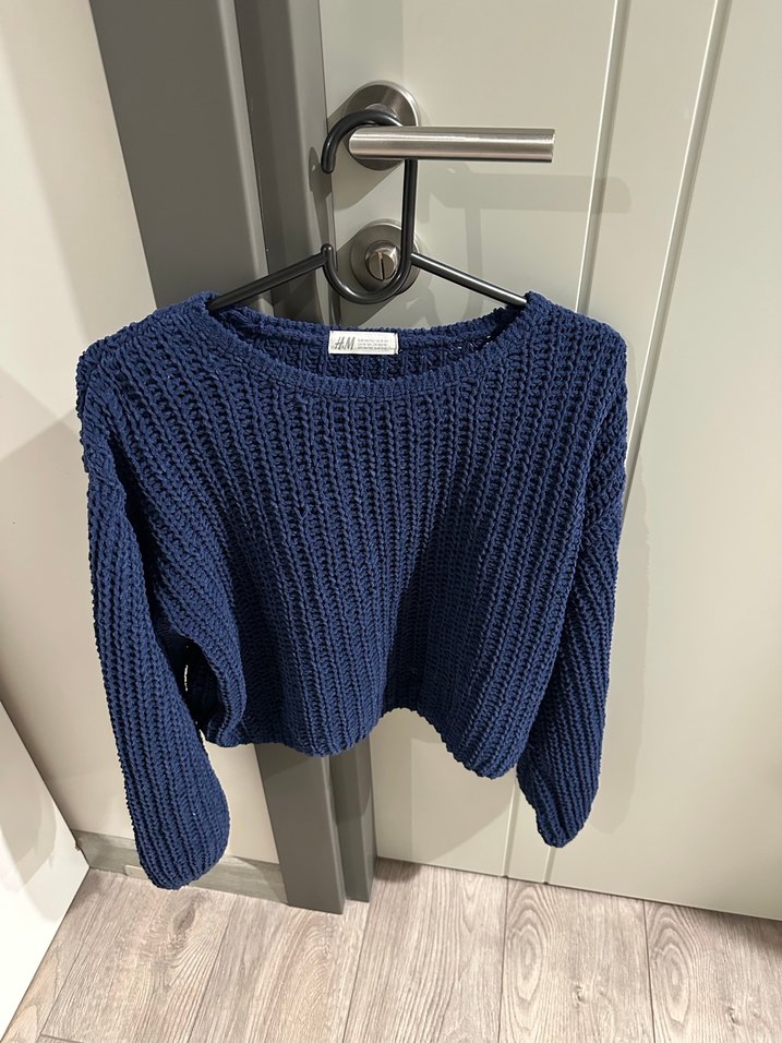 Çocuklar için lacivert, örgü dokulu, yuvarlak yaka ve uzun kollu kazak. Rahat kesimi ve koyu renk tonu günlük kullanıma uygundur.