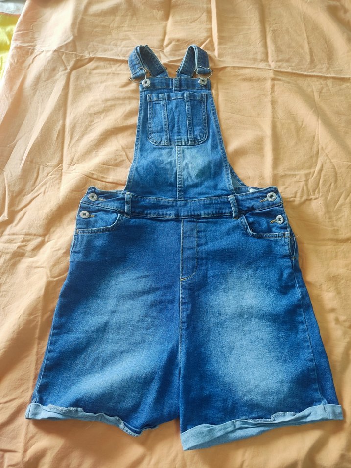 Mavi renkte, askılı ve toka detaylı, bol kesim kısa denim salopet. Günlük kullanım için uygun rahat sokak stili. ölçüleri resimlerde belirttim ölçüleri dikkate alınız iade yoktur. paça kısımlarına ütü yada dikis yapılmalı. resimleri detaylı olarak inceleyiniz iade yoktur ‼️