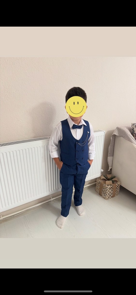 Çocuk Mavi Kemerli Kolsuz Takım Elbise