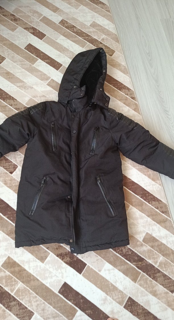 siyah kalın kürk mont içi yumuşacık ve aşırı sıcak tutuyor .