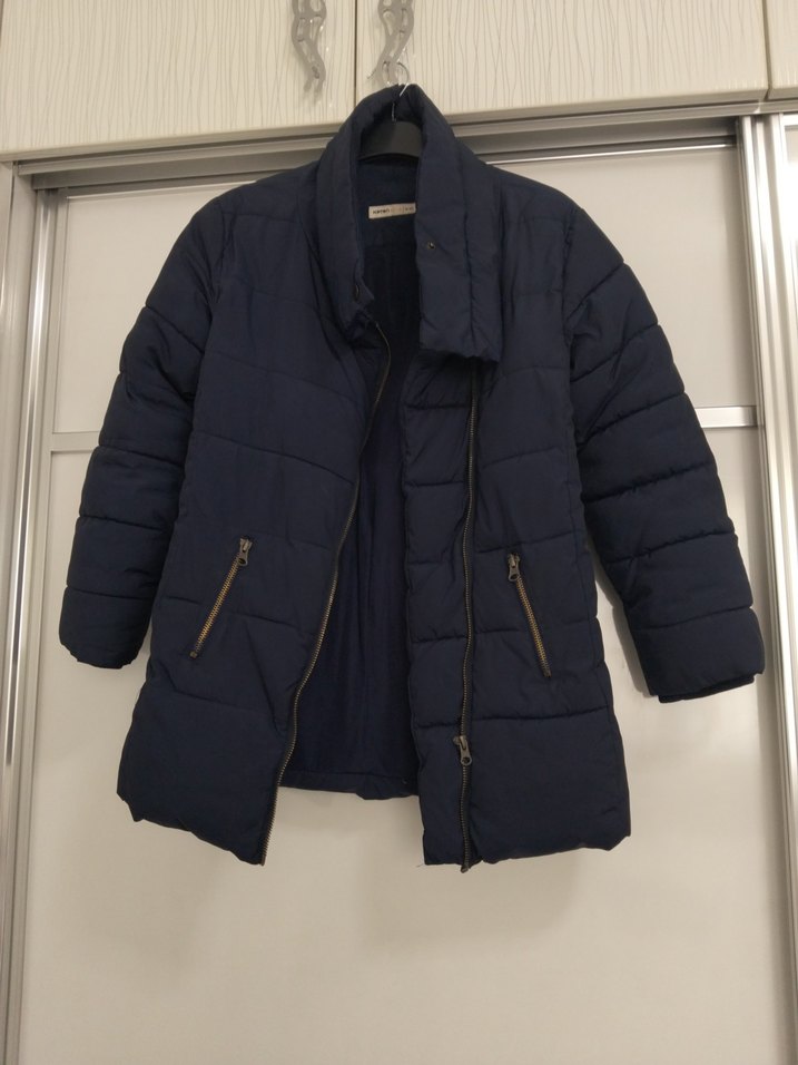 cocuk için fermuarlı, dik yakalı, yumuşak ve sıcak kumaştan yapılmış, normal boyda lacivert kışlık ceket. Günlük kullanıma uygun rahat kesim. ❄️