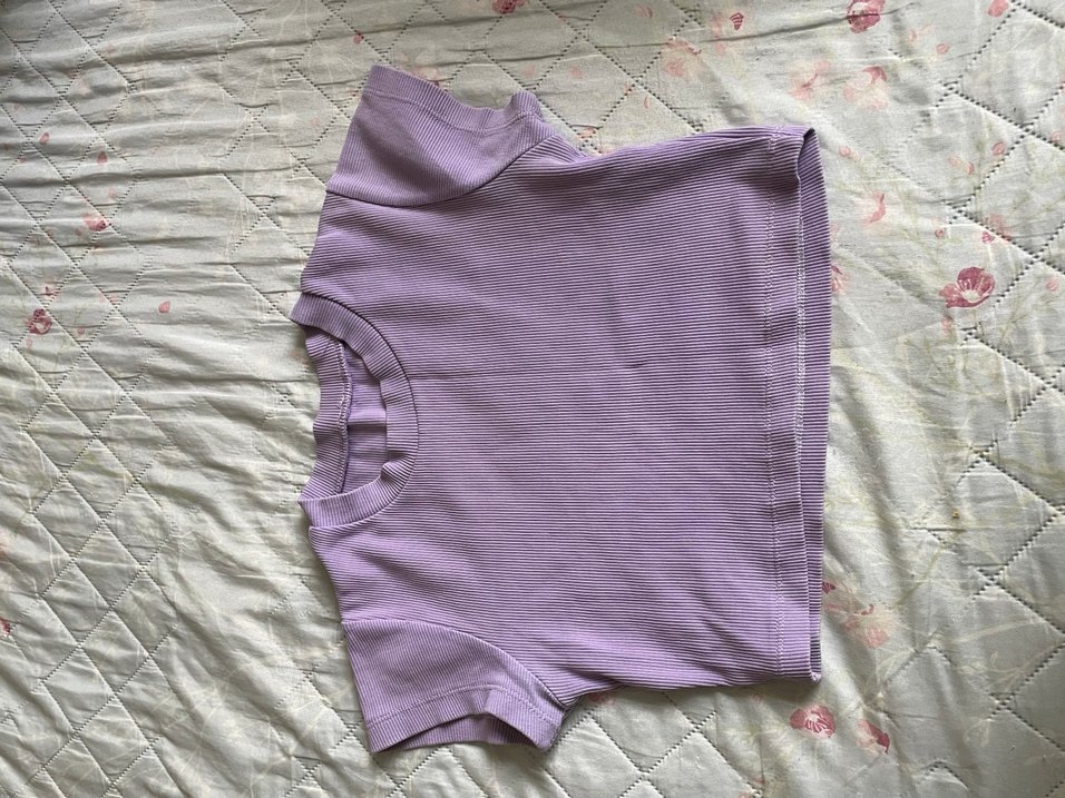 Pastel mor renkli, düz desenli, kısa kollu ve yuvarlak yakalı çocuk atleti. Yumuşak ve rahat bir kullanım sağlar.