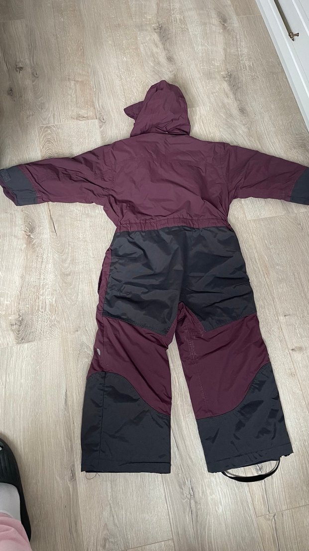 Koyu mor renkli kayak tulumu, fermuarlı ve yakalıdır. Siyah takviyeli panellerle dayanıklılığı artırılmış, kapüşonlu ve elastik bel detaylıdır. ❄️