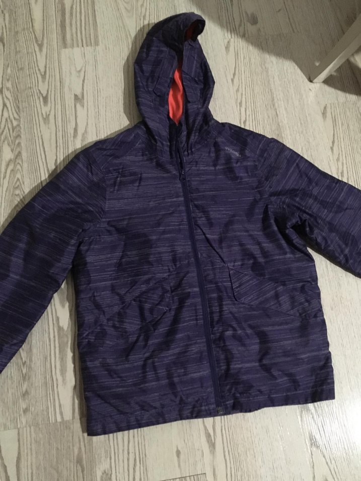 Çocuk Mor Kapüşonlu Fermuarlı kar montu