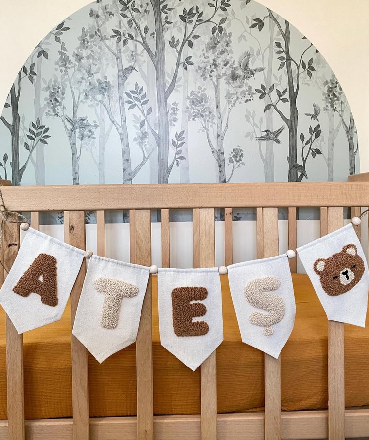 Hafif kahverengi nakışlı pamuklu bu aksesuar çocuk uyku ortamları için uygundur. Yumuşak ve dekoratiftir, sıcak bir dokunuş katar. İstenilen model ve renkte sipariş verebilirsiniz