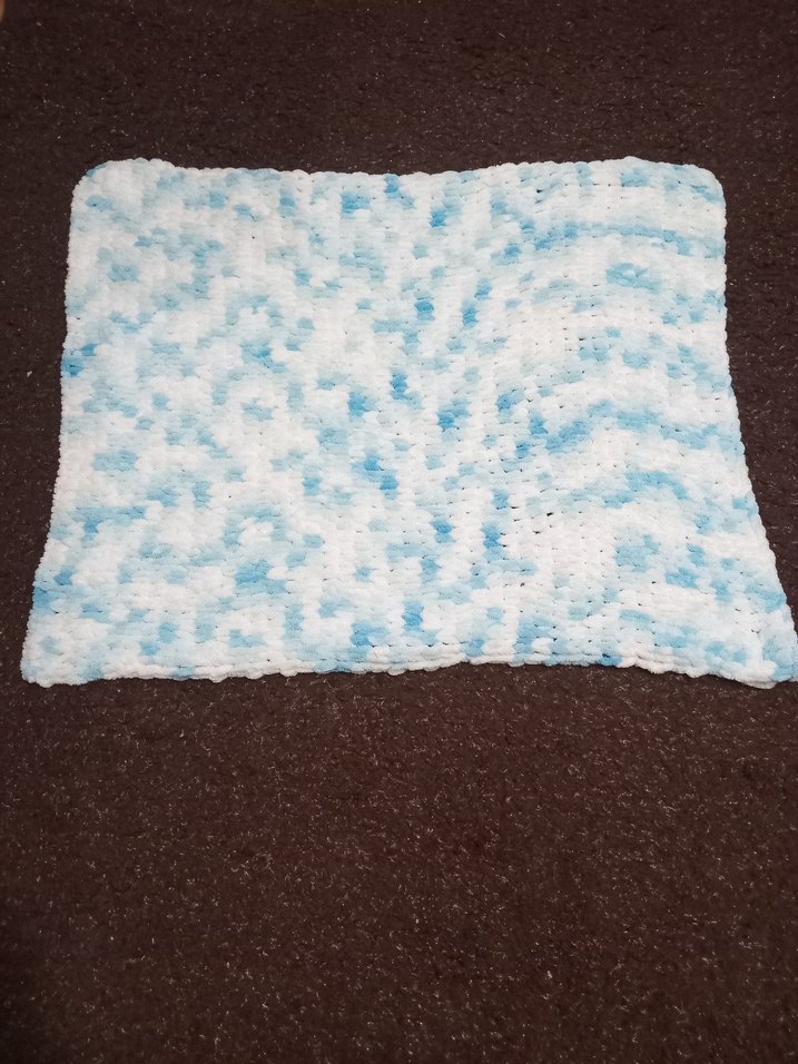 Yumuşak örgü malzemeden yapılmış, pastel mavi tie-dye desenli çocuk battaniyesi. erkek bataniyesi