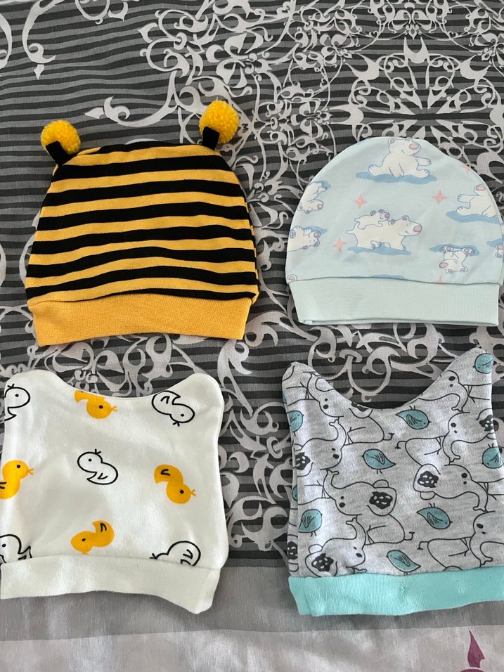 Örgü çocuk bereleri, çizgili, ördek, bulut ve hayvan desenleriyle. Yumuşak ve rahat, günlük kullanıma uygun.