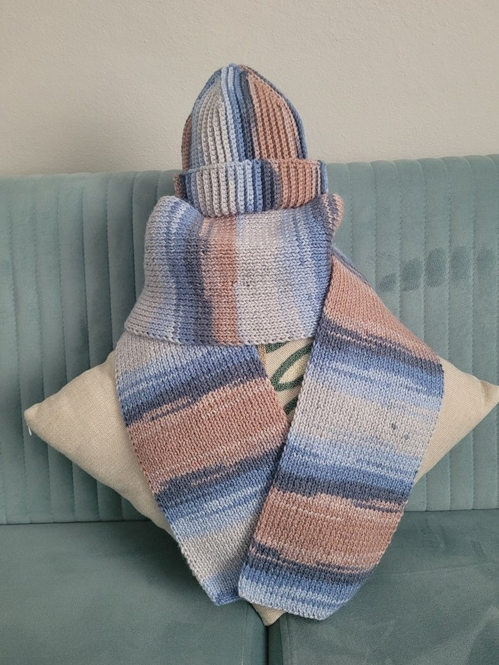 Çocuk Örgü Bere ve Atkı Seti, Pastel Renkli