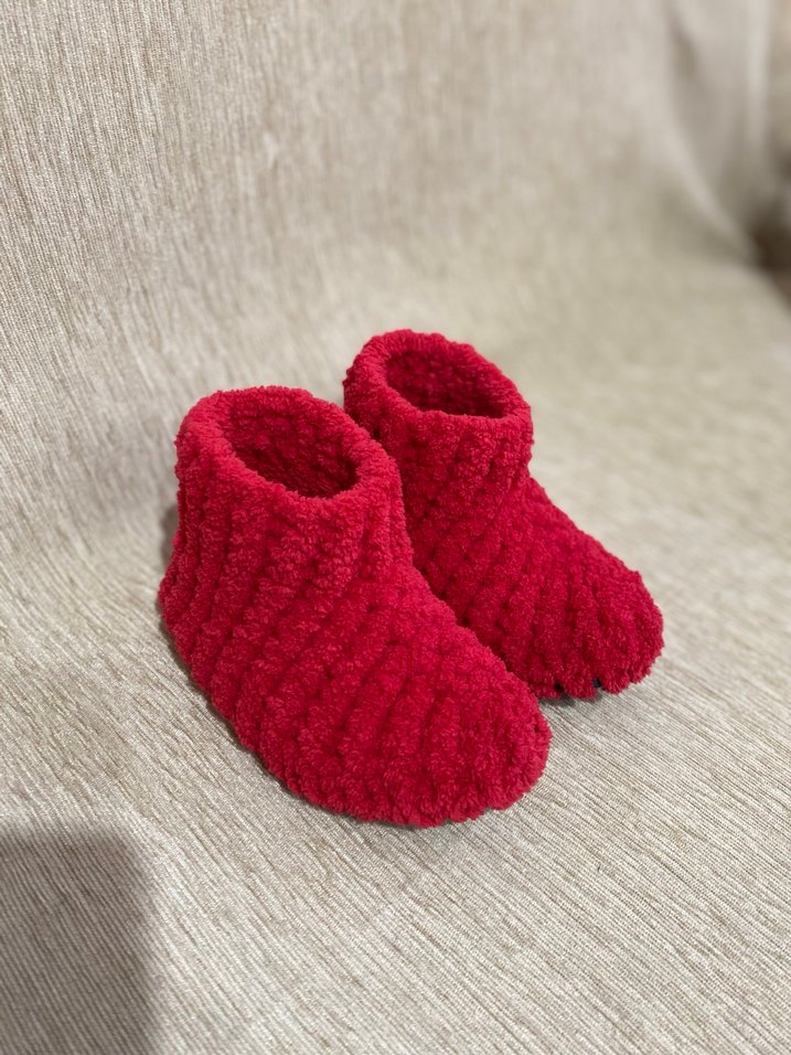 Kız çocuklar için kırmızı örgü ev terliği, sıcak ve rahat tutan sade, desensiz tasarıma sahiptir. Yumuşak örgü kumaştan üretilmiştir. 23-24 numara görselde ki istenilen renk ve ölçülerde sipariş alınır