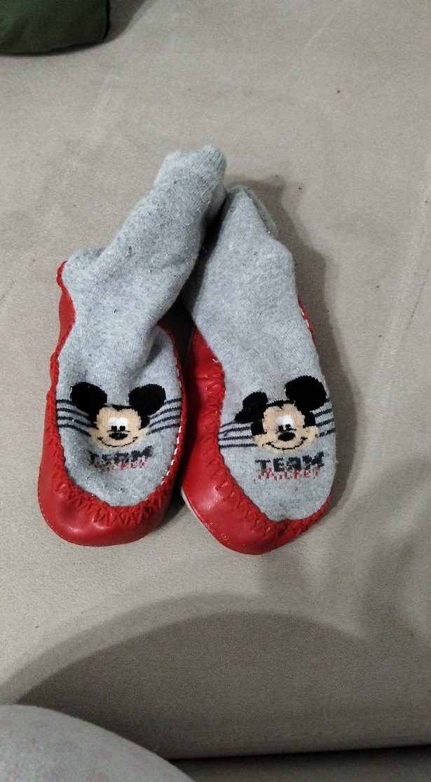 Örme üst yüzeyli, renkli baskılı ve yumuşak kauçuk tabanlı çocuk sıcak terliği. Tasarımda "TERM" yazısı bulunur.