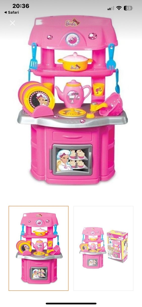 Renkli pembe çocuk oyun mutfak seti, ocak, fırın ve çeşitli mutfak gereçleri içerir. Görsel örnektir kutulu değil çok küçük bir kısmında kırık var ama sorun teşkil etmiyor