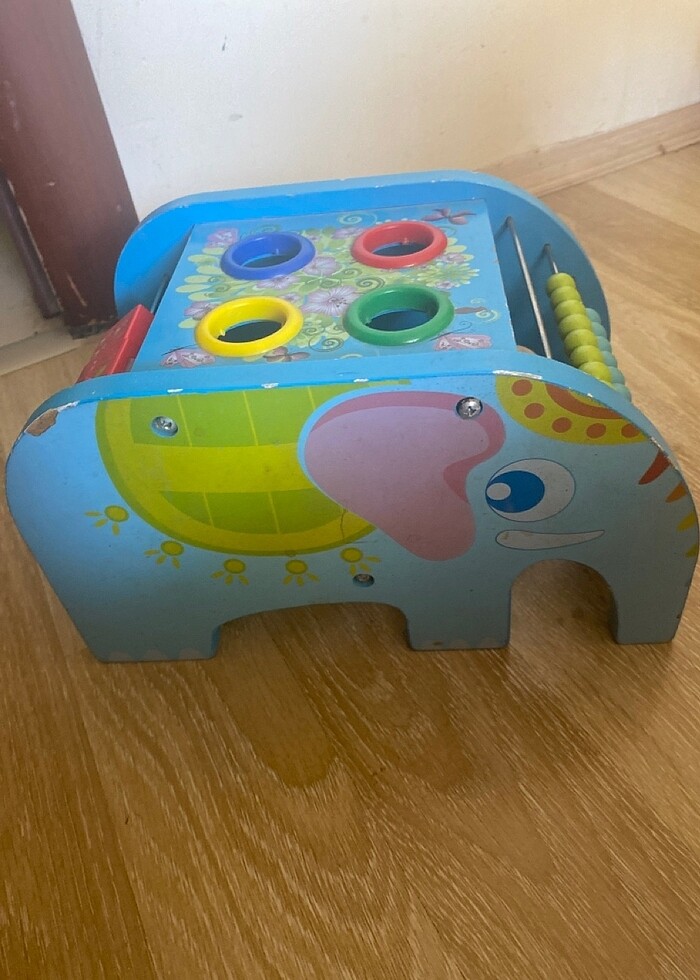 Tahta, şekil, sayı ve hayvanların olduğu bir oyuncak.