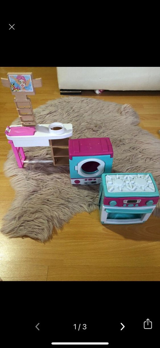 Bu pastel pembe oyuncak mutfak seti, hayal gücüne yönelik dolap, çamaşır makinesi ve fırınlı ocak içerir. sorunsuz temiz