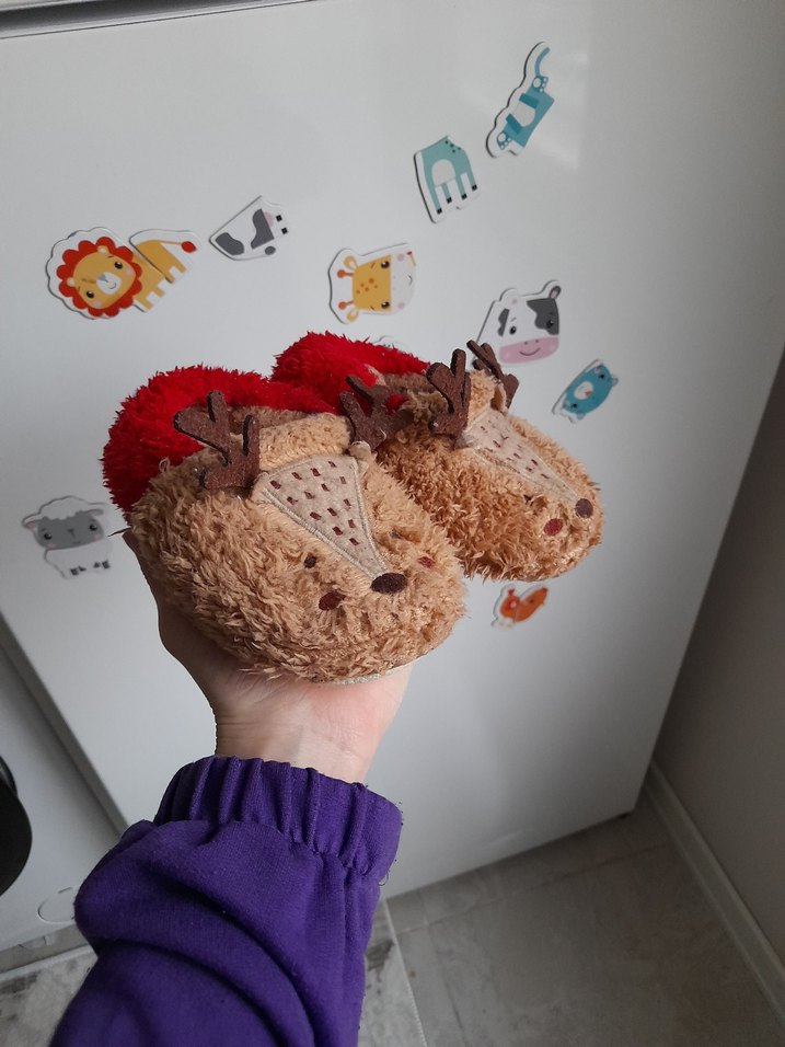 Çocuk geyik figürlü ev pandufu ev ayakkabısı 23 24 no fakat kalıbı dar 22 23 giyen çocuğa daha rahat olur, yenidir kusuru yoktur sadece yıkandı Teklifler değerlendirilir