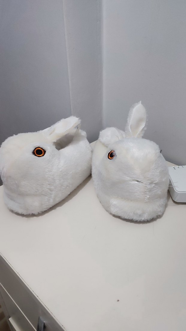 Kızlar için beyaz, yumuşak kürklü ve tavşan figürlü sıcak terlikler. 33 35 no aldık 2 adet aldık bunu kullanmadan küçüldü tertemiz.marka temsili