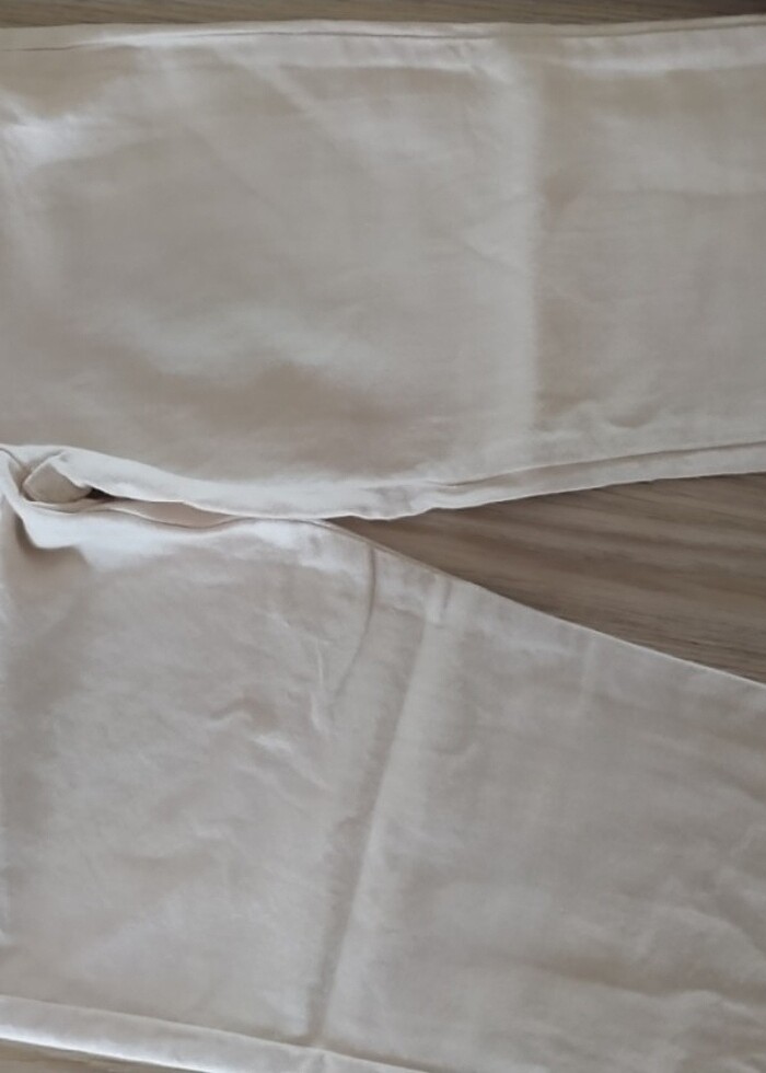 Yazlık keten tarzı kaliteli bir kumaşa sahip hiçbir sıkıntısı yok.Açık bej krem rengi arasında bir renk
