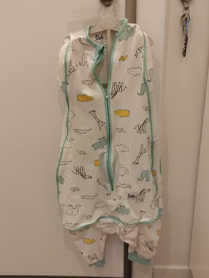 Fermuarlı ön kısmı ve bol kesimiyle erkek çocuklara özel kolsuz uyku tulumu, pastel gri yılan desenlidir. Rahat ve kolay giyilir.