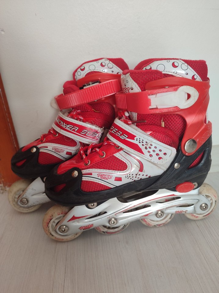 Kırmızı renkli kullanılabilir paten. 33-36 numara olarak ayarlanılabilir. Çantası ile birlikte satıştadır.
