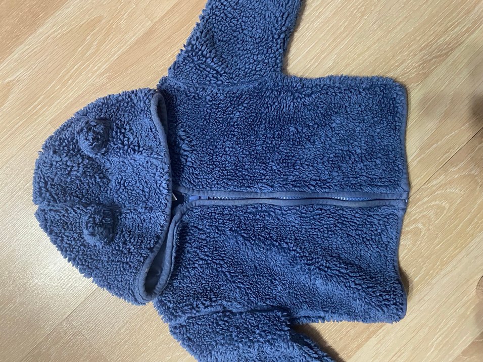 Çocuklar için yumuşak ve sıcak dokulu koyu mavi kapüşonlu hırka Fermuarlı ve rahat bir yapıya sahiptir.