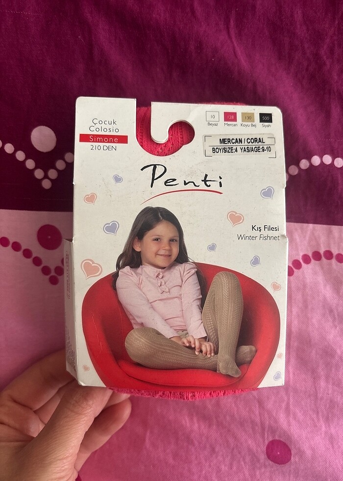 Ürün ambalajından hiç çıkmadı. Bu ürünün aynısından kullandık. Çok kullanışlı. Çorapları hep fazladan yedeklerini aldığım için elimde kaldı. 9-10 yaş. Çok tatlı mercan rengi var.