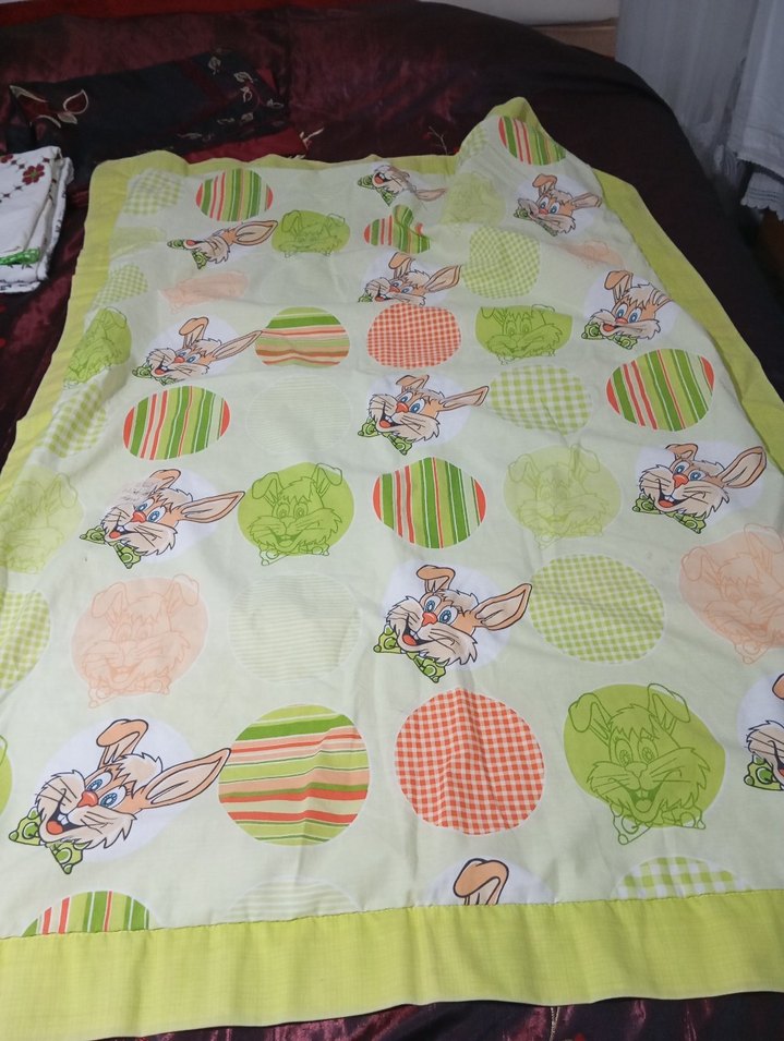 Yumuşak sentetik kumaştan yapılmış, pastel çok renkli baskılı çocuk battaniyesi, eğlenceli çizgi film karakterleri içerir. çocuk pike birde carşaf yastık yok