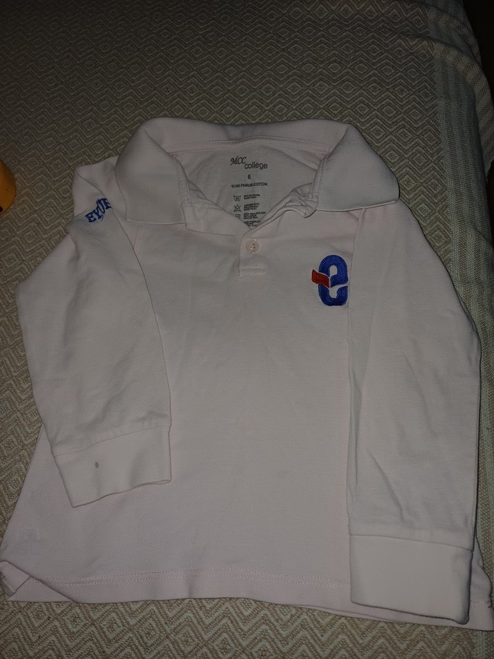 Pamuk kumaştan üretilmiş, baskılı desenli beyaz uzun kollu erkek çocuk polo yaka tişört. Düğmeli ve rahat kesimlidir, günlük kullanıma uygundur.
