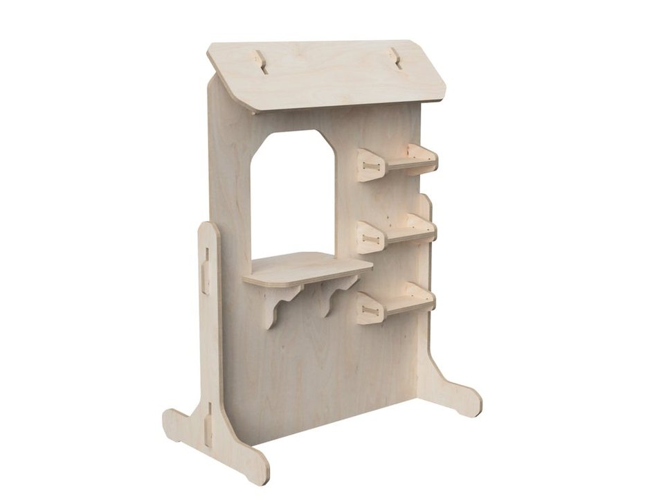 Çocuk Rafı Basit Rol Yapma Stantı Ahşap Tasarım