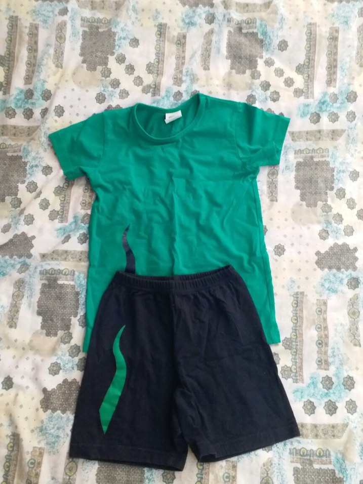 Çocuk Rahat Kesim Koyu Yeşil Şort-Tshirt Takim