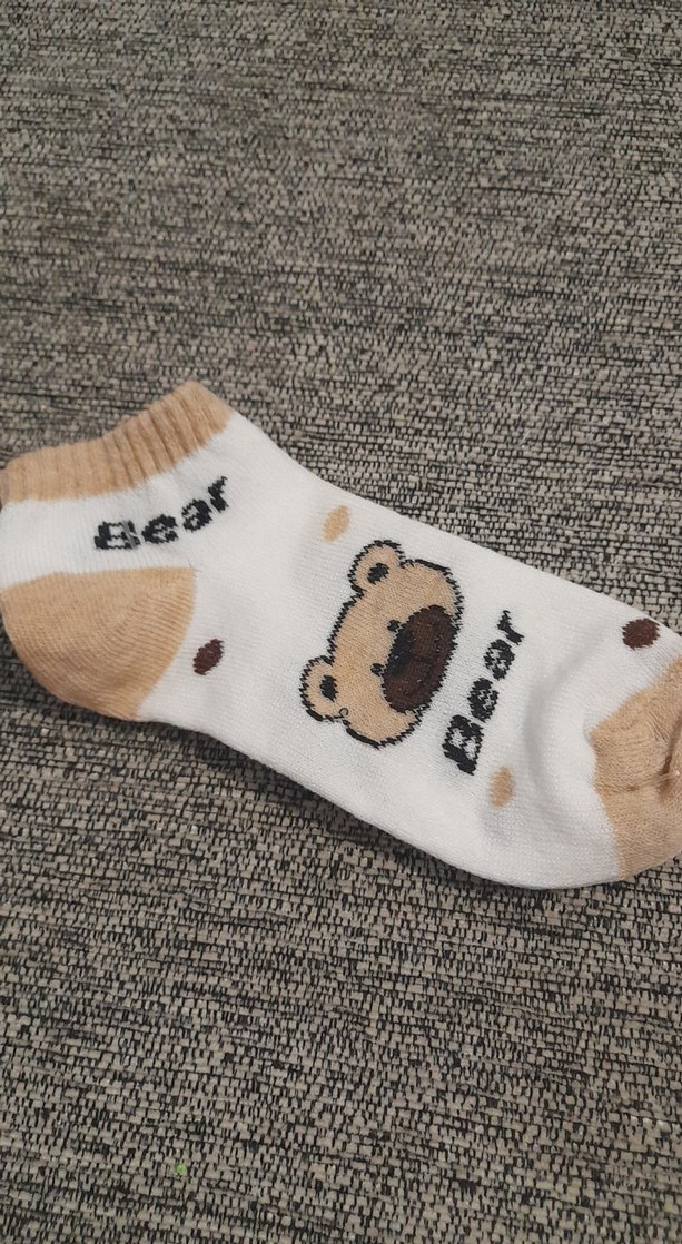 Yumuşak ve sıcak dokulu, kahverengi tonlarda renkli ayıcık desenli çocuk çorabı.