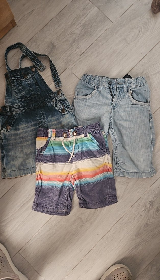 Renkli batik desenli, bağcıklı kemerli, bol kesim kot şort, trend sokak tarzı için uygun.