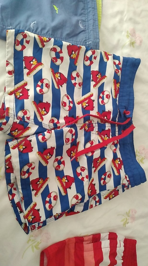 Çocuklar için renkli baskılı desenlere sahip, ayarlanabilir bağcık ve elastik bel bantlı şort mayo.