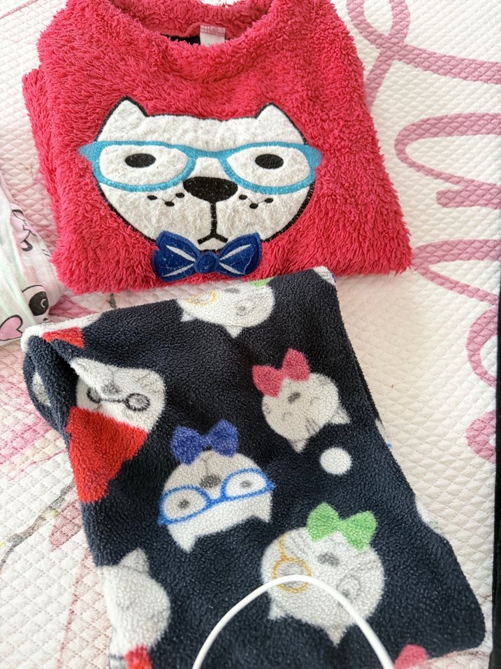 Renkli, nakışlı ve çok renkli desenlere sahip örme pop kültür temalı kedi kıyafeti. Çocuk pijama takımı