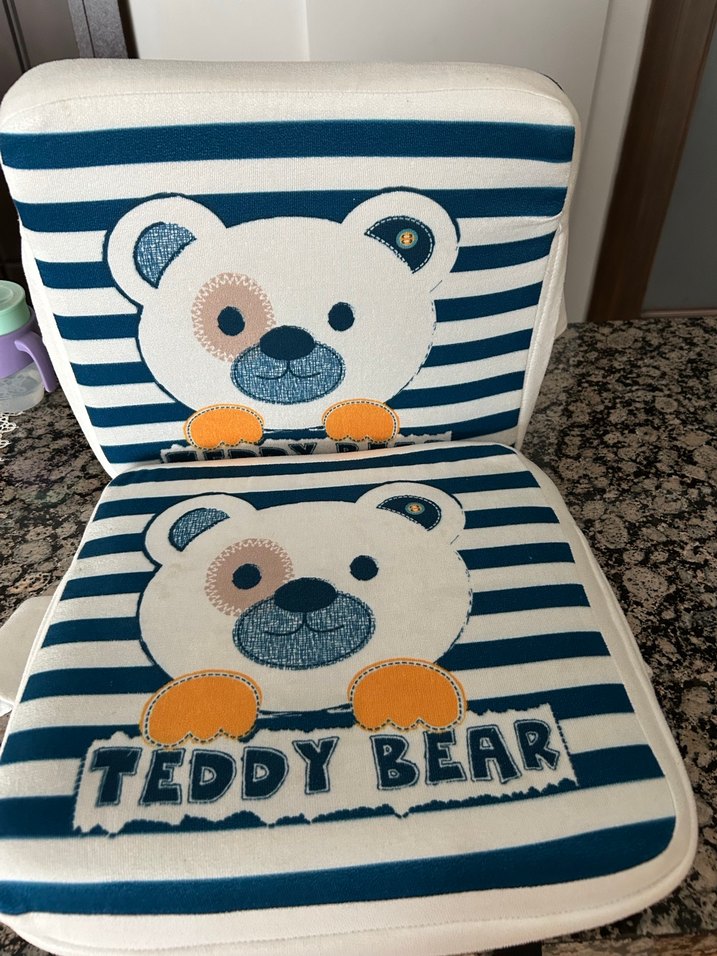 Yumuşak ve sıcak kumaştan yapılmış, çizgili desenli mavi çocuk yastığı. Üzerinde "TEDDY BEAR" yazısı ve ayı baskısı bulunur. Göründüğü gibi sorunsuz ertesi gün kargo