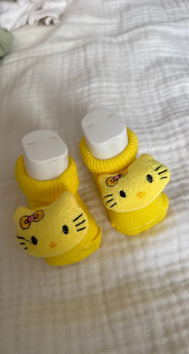 Çocuk Sarı Nakışlı Örgü Ev Terliği