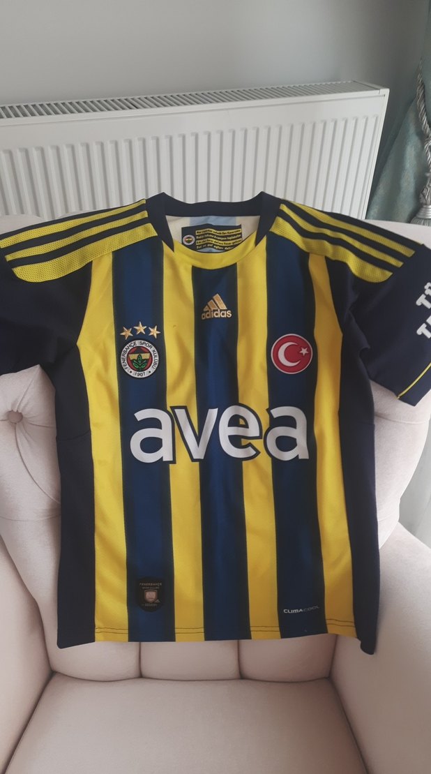 11 12 yaş için sarı ve koyu mavi çizgili, kısa kollu ve bisiklet yaka forma. Velcro detaylı, 'avea' baskılı, günlük sokak stili için uygun. ⚽