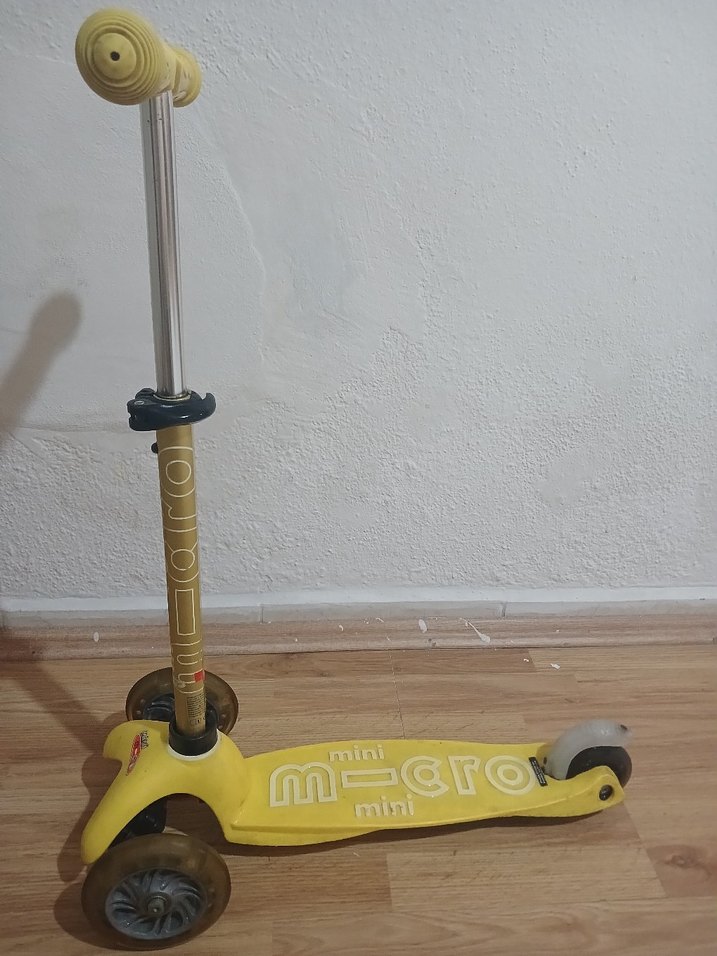 Sarı renkte, ayarlanabilir hafif tutma kolu ve denge için üç tekerleği olan çocuk scooterıdır. Kolay sürüş sağlar. Dehatlondan alınmıştır.