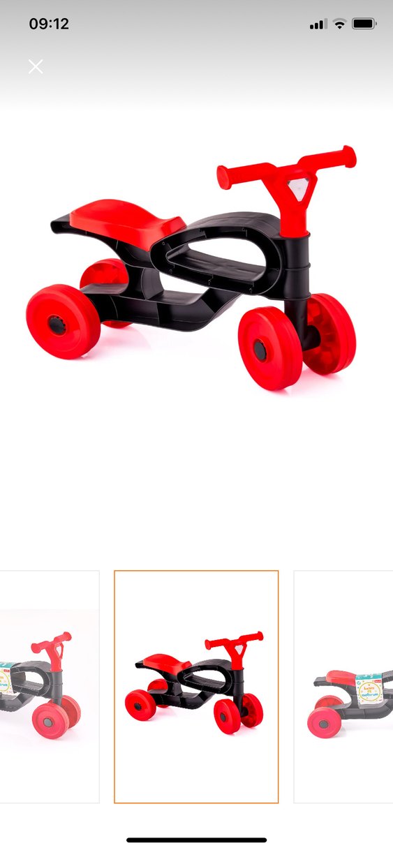 Sağlam gövde ve dört tekerleğiyle çocuklar için renkli kırmızı scooter. Güvenli ve eğlenceli sürüş sağlar. Hiçbir problemi yoktur.