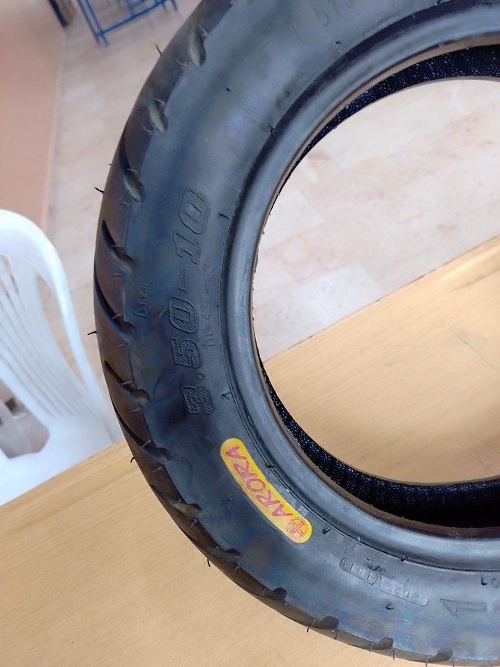 Çocuk scooterları için dayanıklı siyah lastik, renkli 'ARORA' etiketiyle. Pürüzsüz sürüş sağlar.