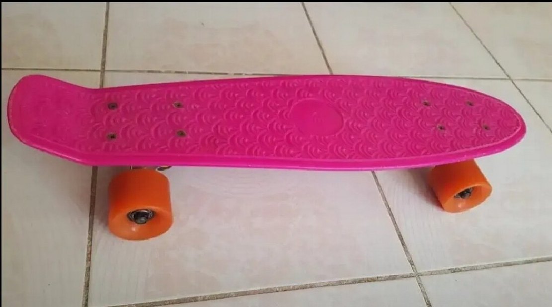 renkli pembe çocuk scooterı, turuncu tekerlekleriyle kolay sürüş sağlar. Evde çok az kullanıldı temiz..