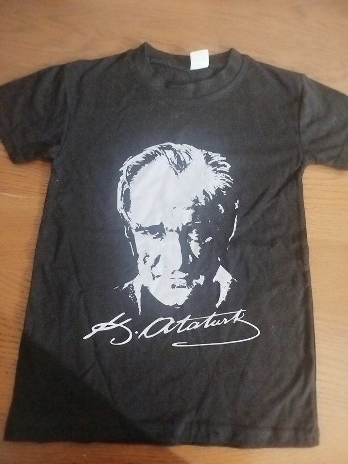 Siyah renkli, pamuklu, bol kesim çocuk tişörtü. Önünde Atatürk baskısı ve yuvarlak yaka bulunur, kısa kolludur. 5-14 yaş arası mevcuttur