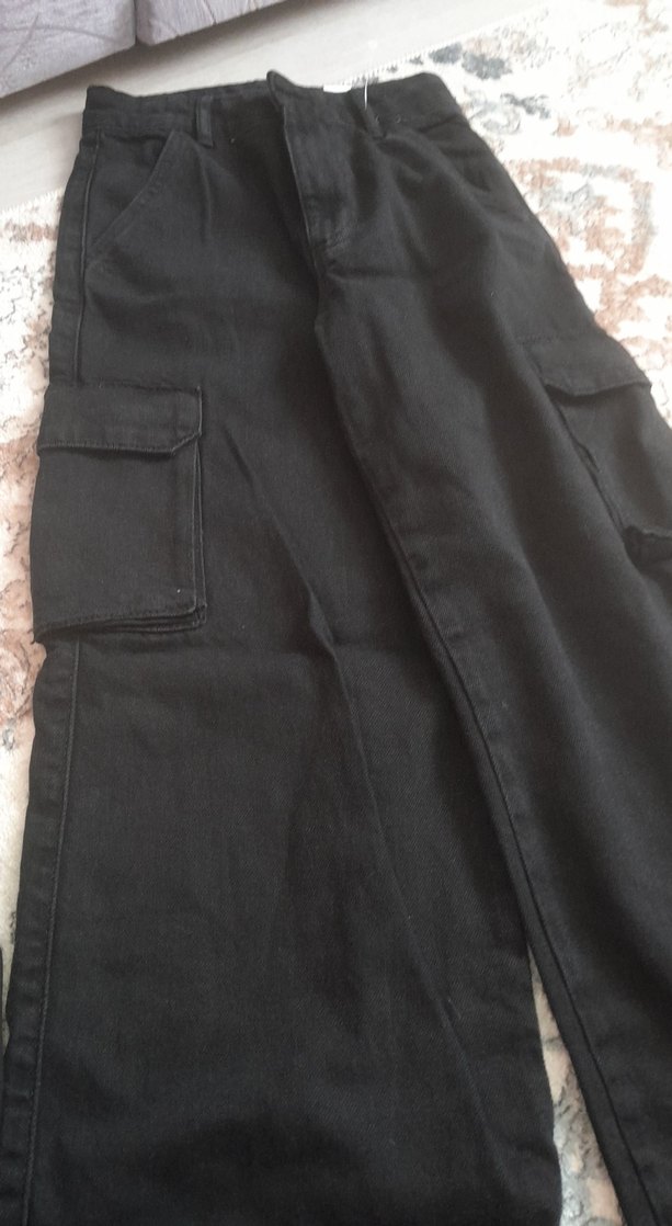 çocuk Siyah Bol Kesim Midi Kot Pantolon