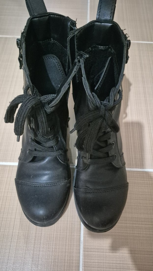 çocuk Siyah Deri Goth Botlar