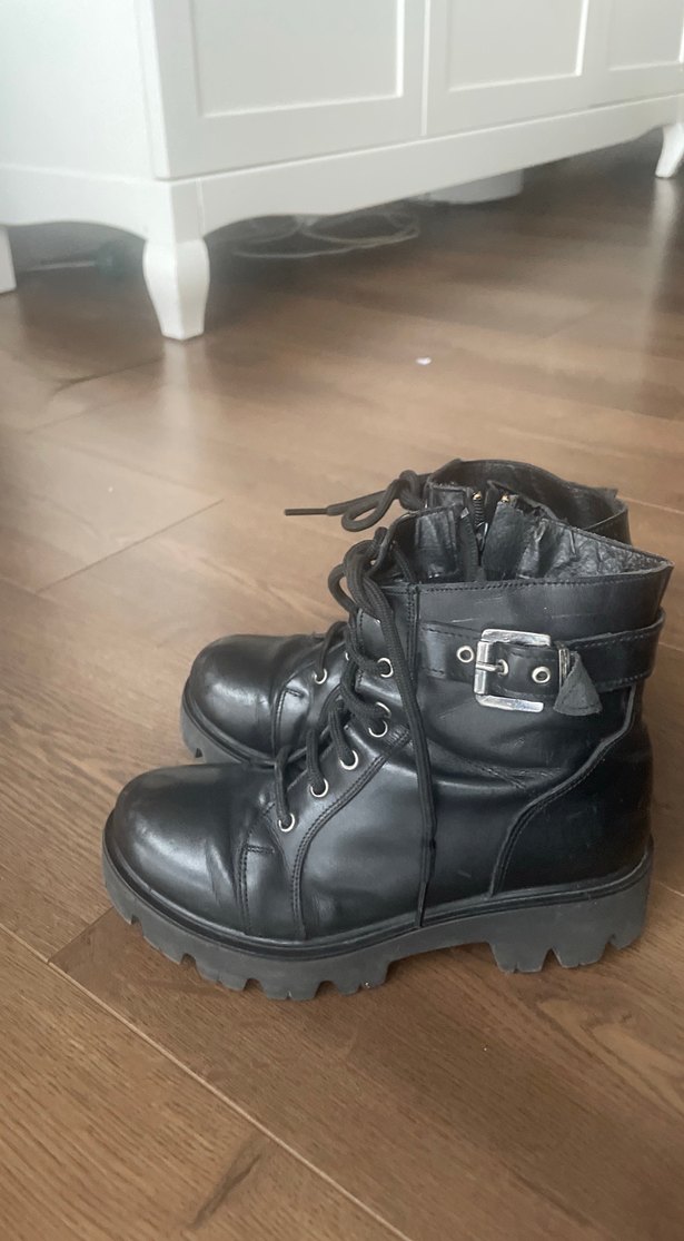 Siyah deri, tokalı goth bot. Çok az giyildi. Çok temiz gerçek deri.